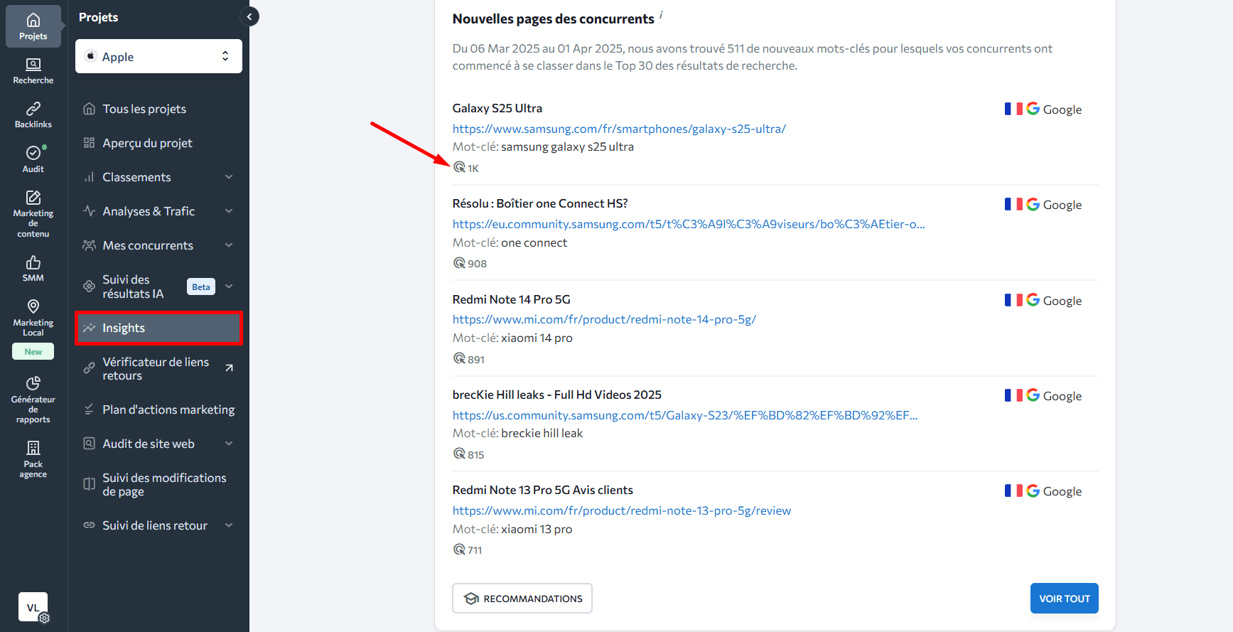 Si vous avez besoin d’examiner vos concurrents de plus près ou si vous souhaitez les identifier, utilisez la recherche concurrentielle. Avec cet outil, vous apprendrez tous les secrets de vos concurrents lors de la recherche.