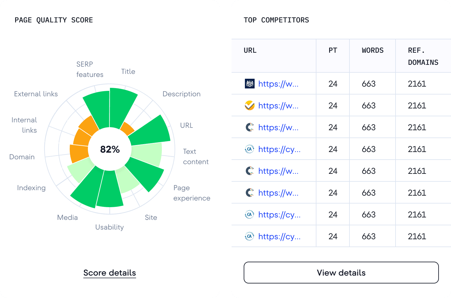 Analyseer de prestaties ervan in de context van je SERP-concurrentie om belangrijke kansen te ontdekken en verbeterpunten te identificeren.