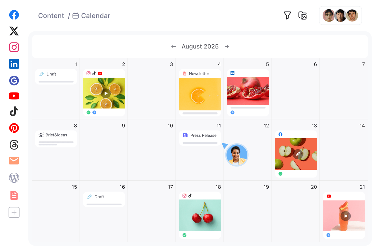 Coordinate across teams and clients easily. Tap into SEO data, stay in the loop on messaging, and align SEO and social in real time.