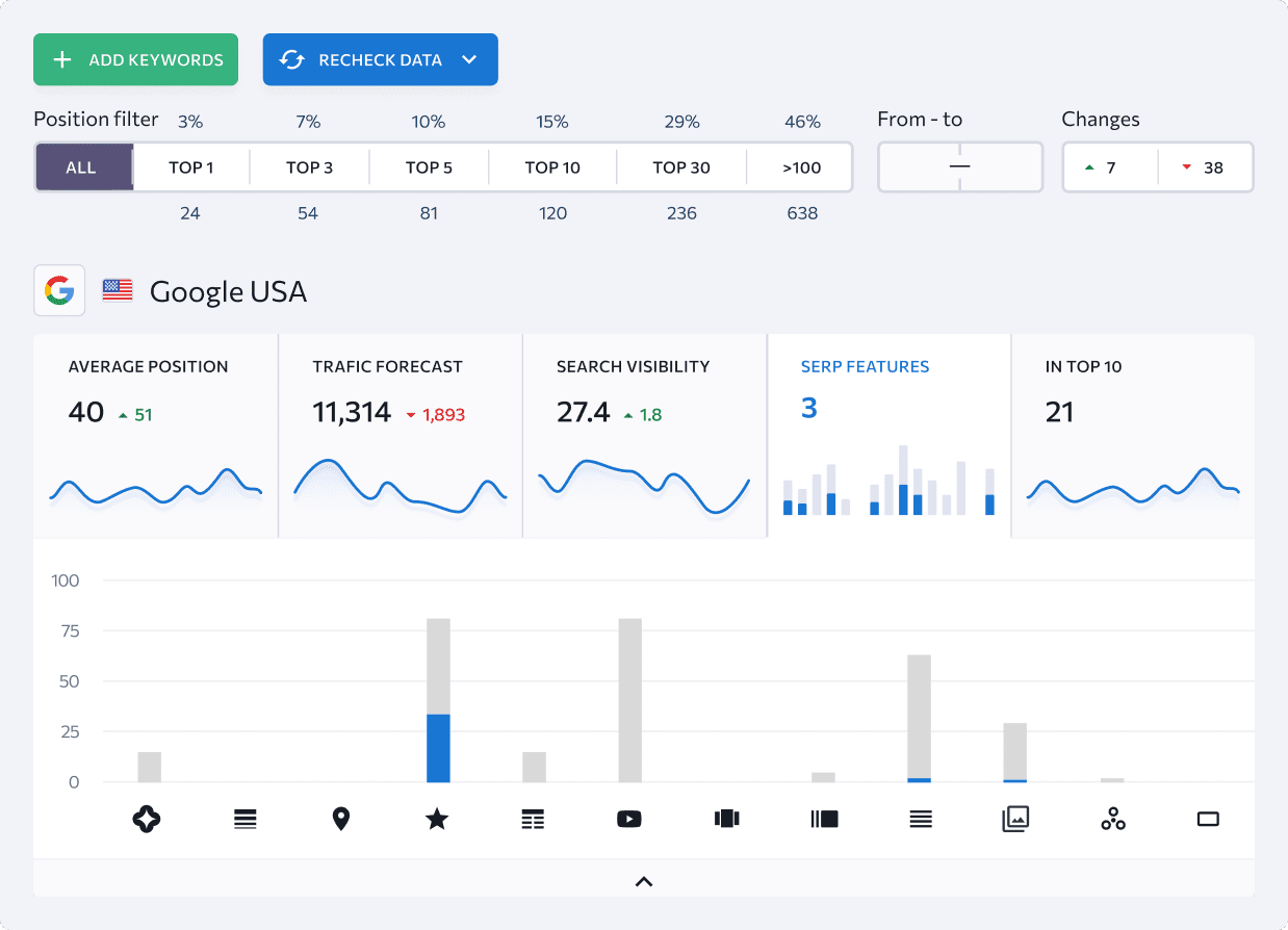 Track 37+ SERP features to gain insights into organic search trends